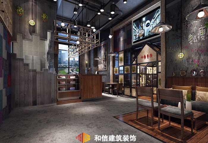 項目介紹:本案咖啡店裝修在最初的設計規劃上,設計師著力想打造一間具有人文色彩的咖啡廳。在整體設計中,我們希望咖啡廳裝修能展示給顧客一種文藝的氛圍,所以采用了LOFT的設計風格,使整個空間達到了功能和藝術的完美結合。簡潔界面的設計、材質的選用應盡可能簡單,這樣才能更清晰地表達空間設計的意圖。簡單的形式和材料成就了純粹的空間氛圍,并使空間產生張力。著重運用幾種特定材質的相互穿插,以形成空間的有機和豐富。單純材質的延續使用可使空間更具整體性。光和影的變化賦予室內空間以生命。